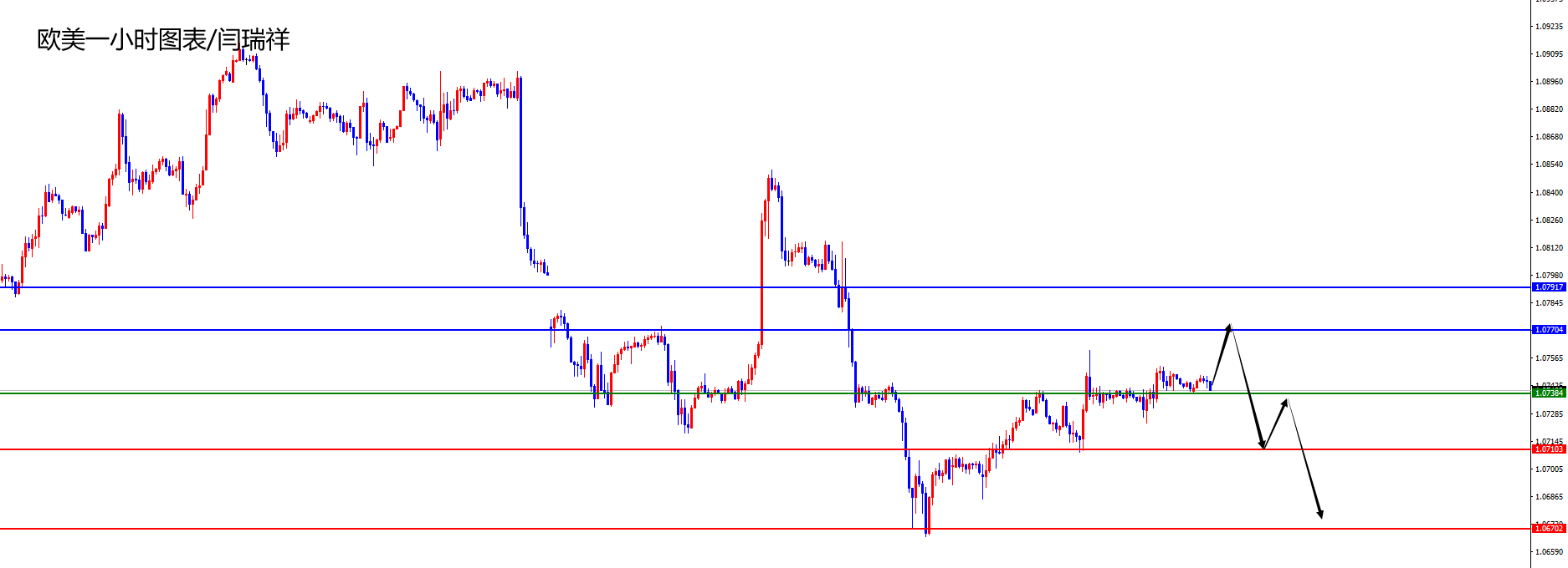 欧美1.0775-85区间空,防守50点,目标1.0710-1.0670