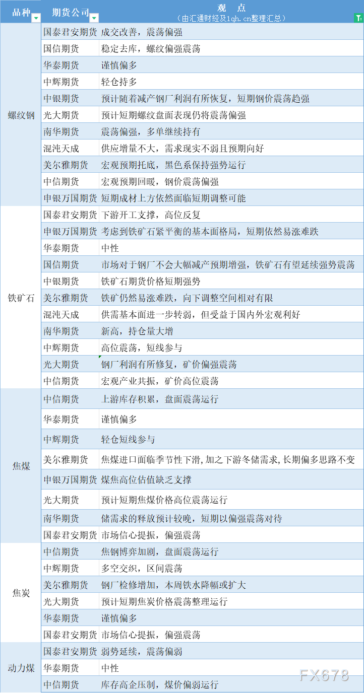期货公司观点汇总一张图:11月6日黑色系(螺纹钢、焦煤、焦炭、铁矿石、动力煤等)