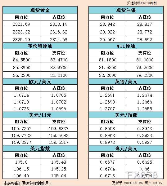 本文提供黄金、原油、美元指数、欧元、英镑、日元、瑞郎、澳元支撑阻力位。