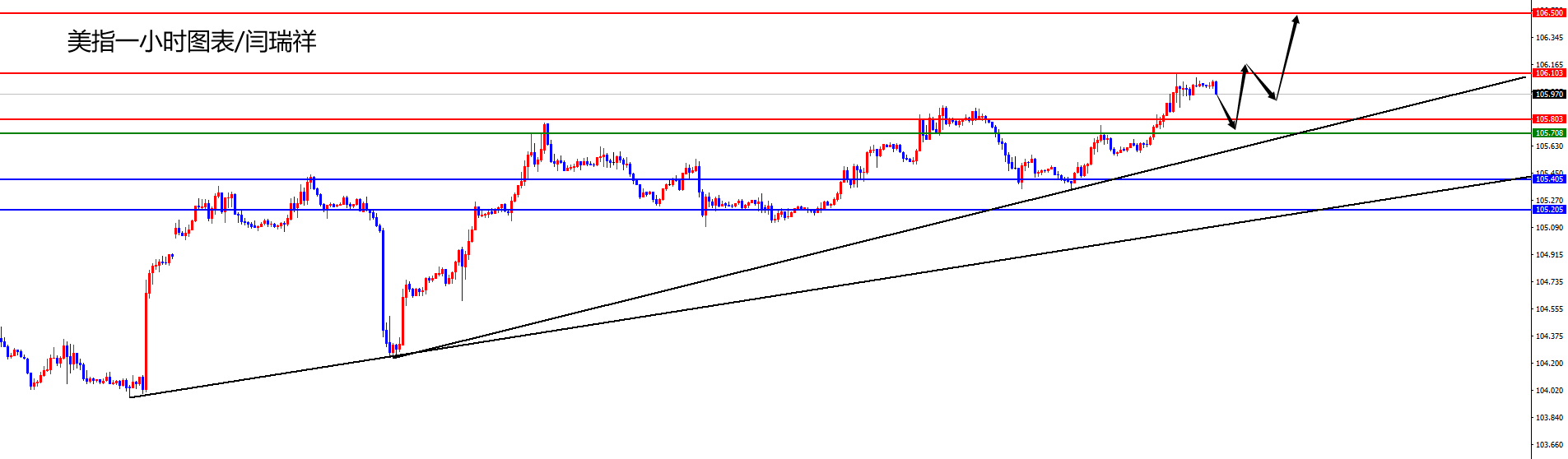 美指105.70-80区间多,防守5美金,目标106.10-106.50