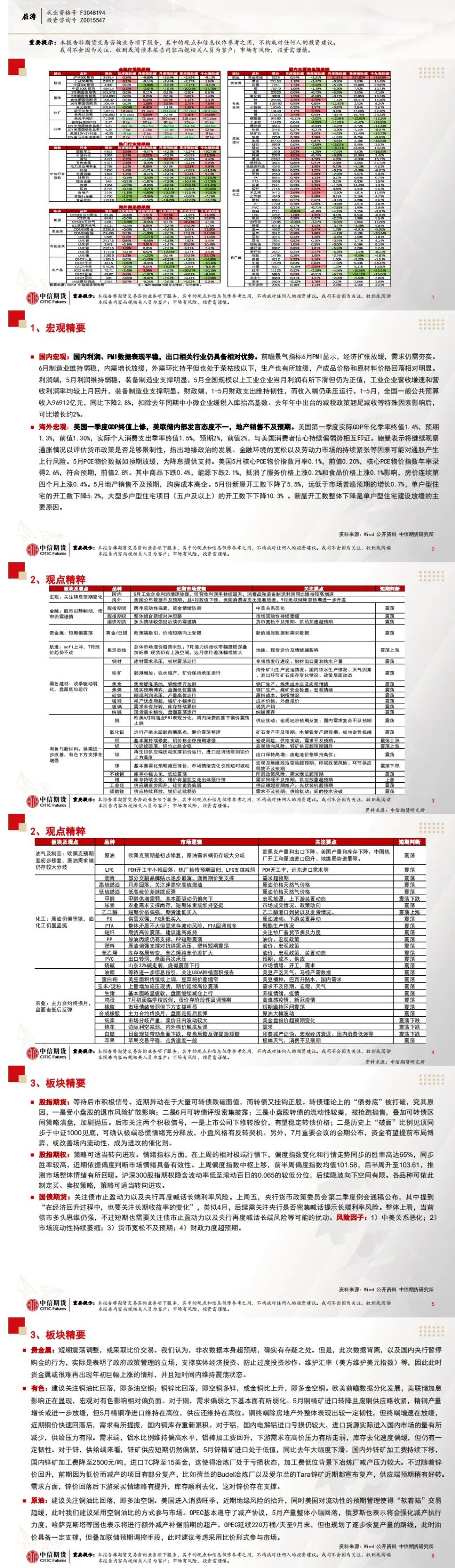 以下为中信期货今日晨报对股指、国债、贵金属、原油能源化工、有色金属、螺纹钢材焦炭黑色系玻璃纯碱等建材、豆类生猪等农产品等期货的操作建议和提醒。