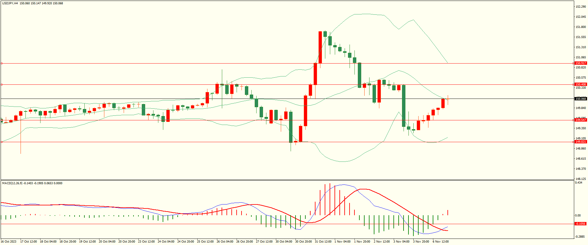 美日昨日亚市开盘后展开反弹,至收盘触及前阻力略有反复,日线报收小阳线,总体来看,日线的高位震荡尚未结束,短线谨慎追涨杀跌,从4H来看,布林中轨偏下,MACD零轴下方运行,日内上方首要阻力150.40,第二阻力150.90,下方支撑149.55,149.00,保持在第一阻力下方短线有望回测第一支撑。