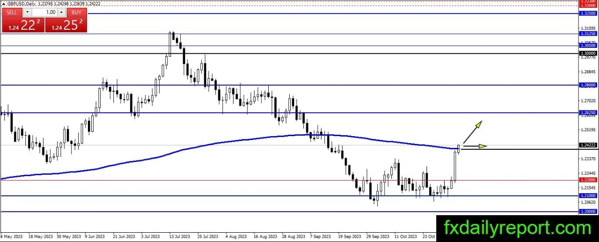 英镑/美元上周末大幅上涨,收盘距200日均线不远。该货币对今日继续走强,目前位于200日均线上方。如果该货币对能够维持看涨动力并加大涨幅,那么英镑/美元将继续走强,看涨势头可以继续向1.2625迈进。