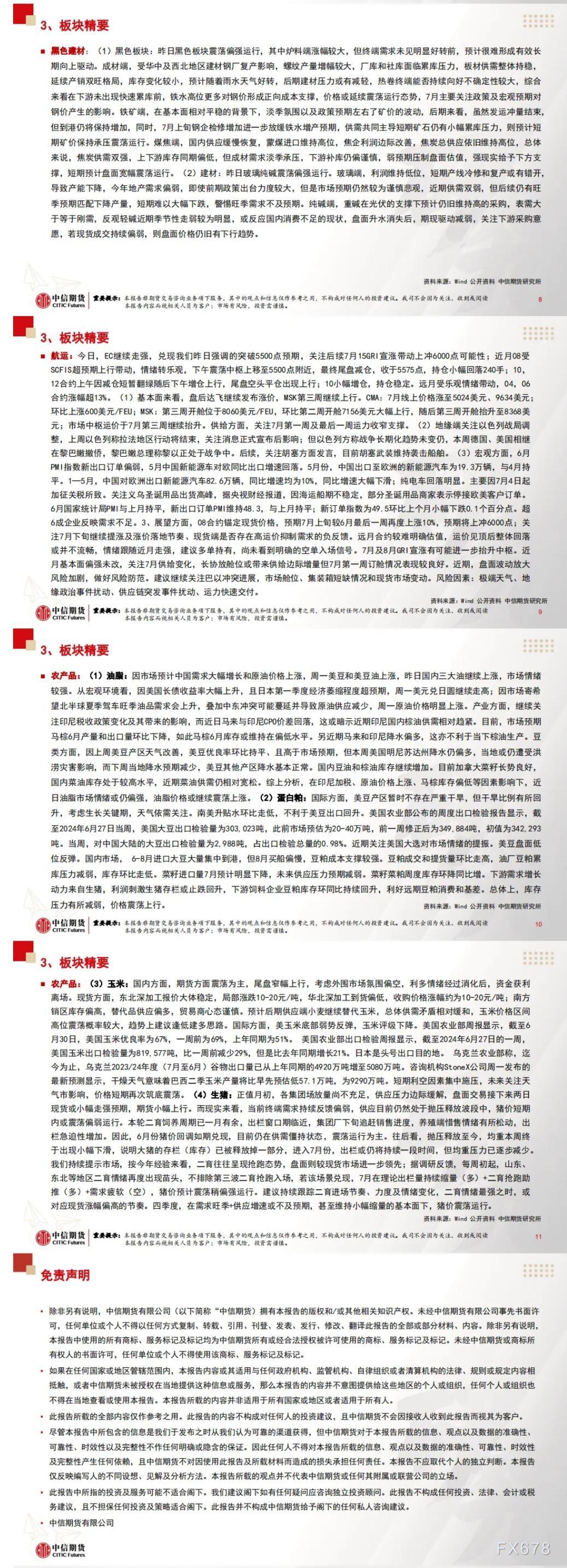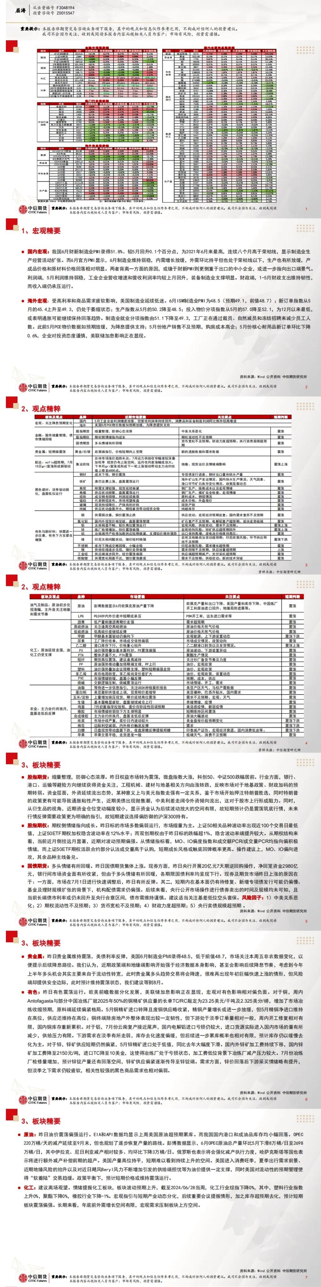 以下为中信期货今日晨报对股指、国债、贵金属、原油能源化工、有色金属、螺纹钢材焦炭黑色系玻璃纯碱等建材、玉米生猪油脂蛋白粕等农产品等期货的操作建议和提醒。