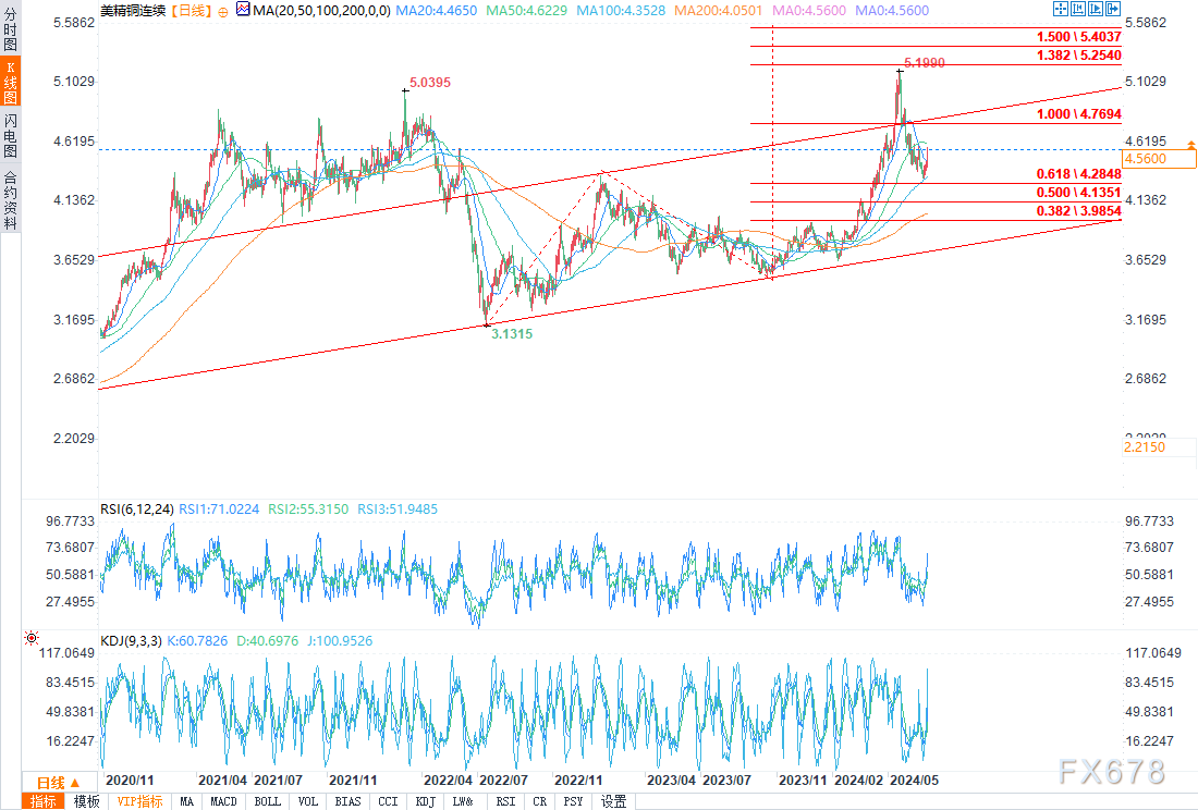 北京时间00:26,COMEX期铜报4.5610美元每磅,涨幅0.61%。LME铜报9875美元每吨,涨幅0.23%。