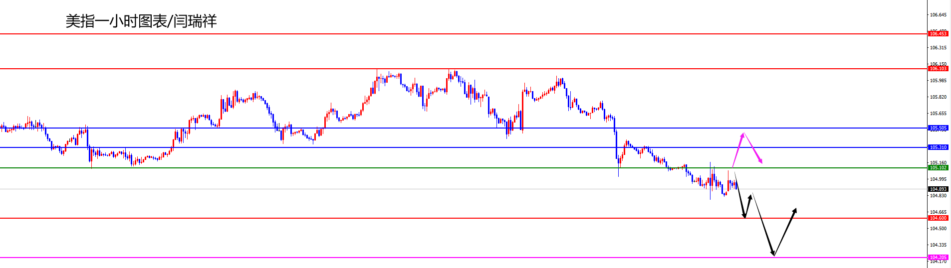美指105.10-20区间空,防守5美金,目标104.60-20