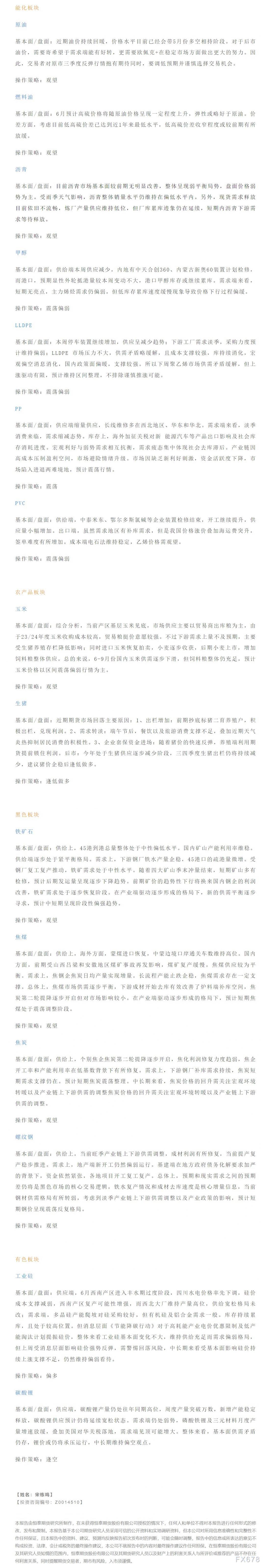 以下是恒泰期货今日早间交易策略,覆盖品种有:宏观分析、原油燃料油等能源化工、玉米生猪等农产品、黑色系如铁矿石焦煤焦炭螺纹钢、有色系如工业硅碳酸锂等。