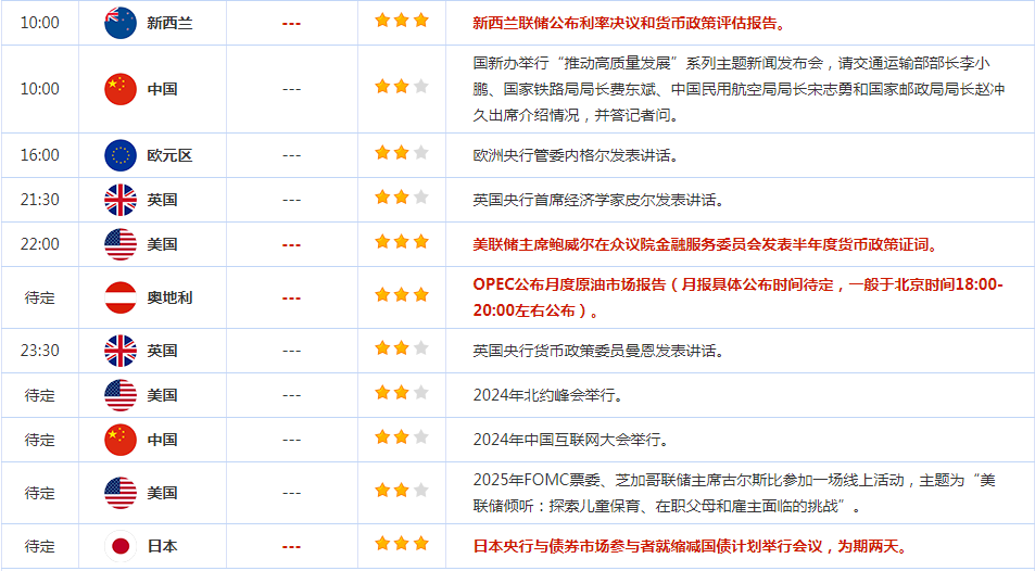 本交易日美联储主席鲍威尔还将在众议院金融服务委员会发表半年度货币政策证词,投资者也需要予以留意。另外,关注地缘局势相关消息。