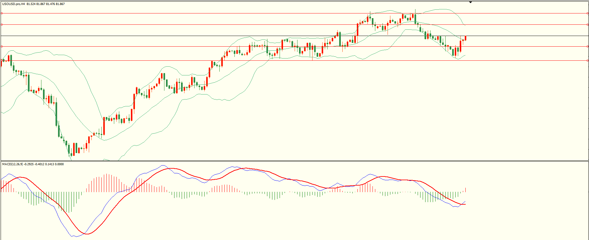 原油昨日先抑后扬,盘中回落至第一支撑上方展开反弹,日线报收上下影线中阳线,下方支撑保持,同时上方阻力犹存,短线预防震荡再现,从4H来看,布林上下轨收窄,MACD零轴下方运行,日内下方首要支撑81.00-10,第二支撑79.95,上方阻力82.75,83.60-70,保持在第一支撑上方短线有望测试第一阻力,谨防冲高回落。